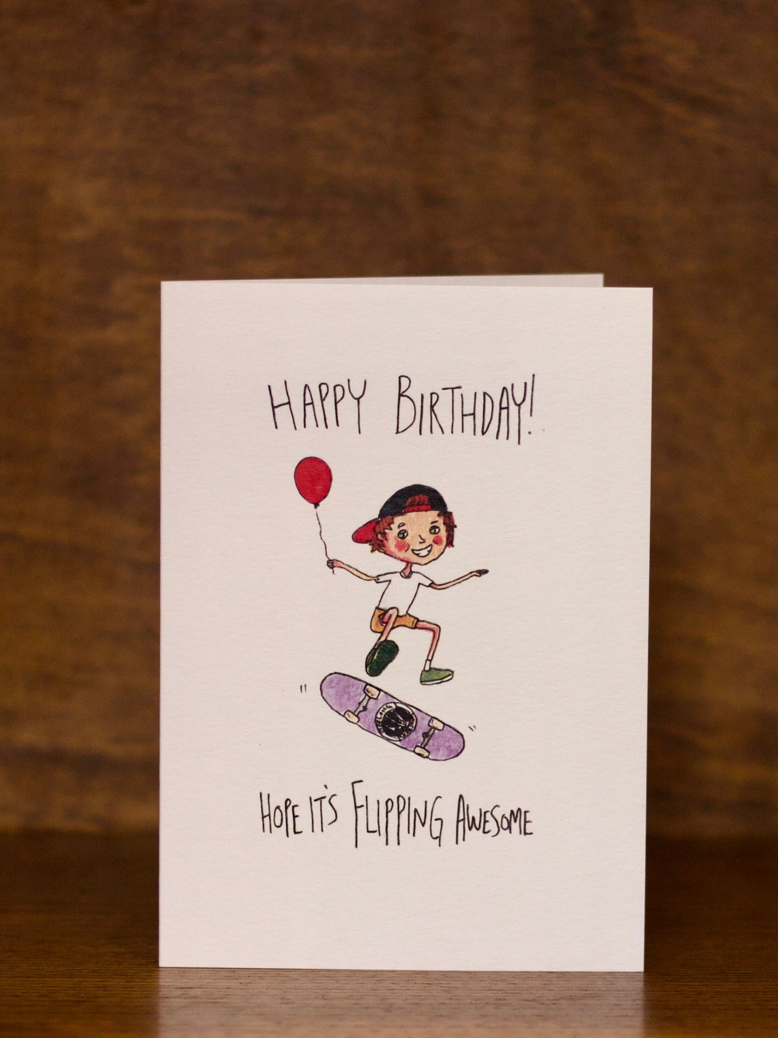 front greeting | "Happy birthday, hope it's flipping awesome"
