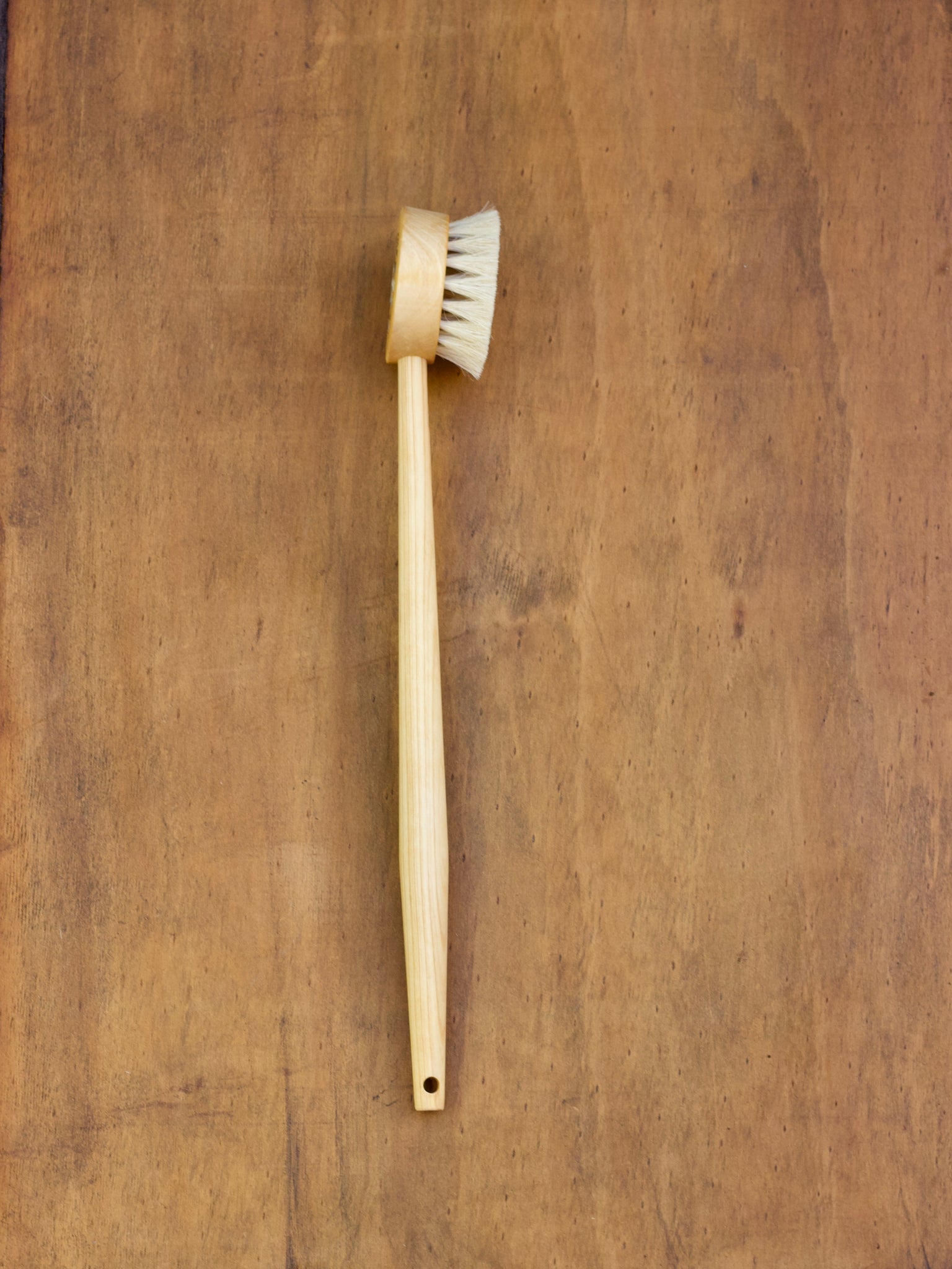 Bath brush in oiled birch and horsehair. Bath brush with extra long handle that improves access to the back. Horsehair is an excellent material in bath brushes as it is soft and flexible at the same time as it is strong and durable and has a certain elasticity. Together with a good soap it provides a soft and pleasant lather for a perfect cleaning. The hollow horsehair transports moisture, which means that if you squeeze out the water properly after use, the horsehair will feel almost dry. Let the brush dry hanging or standing on the horsehair so that the water is transported away from the wood, which is more sensitive to moisture.