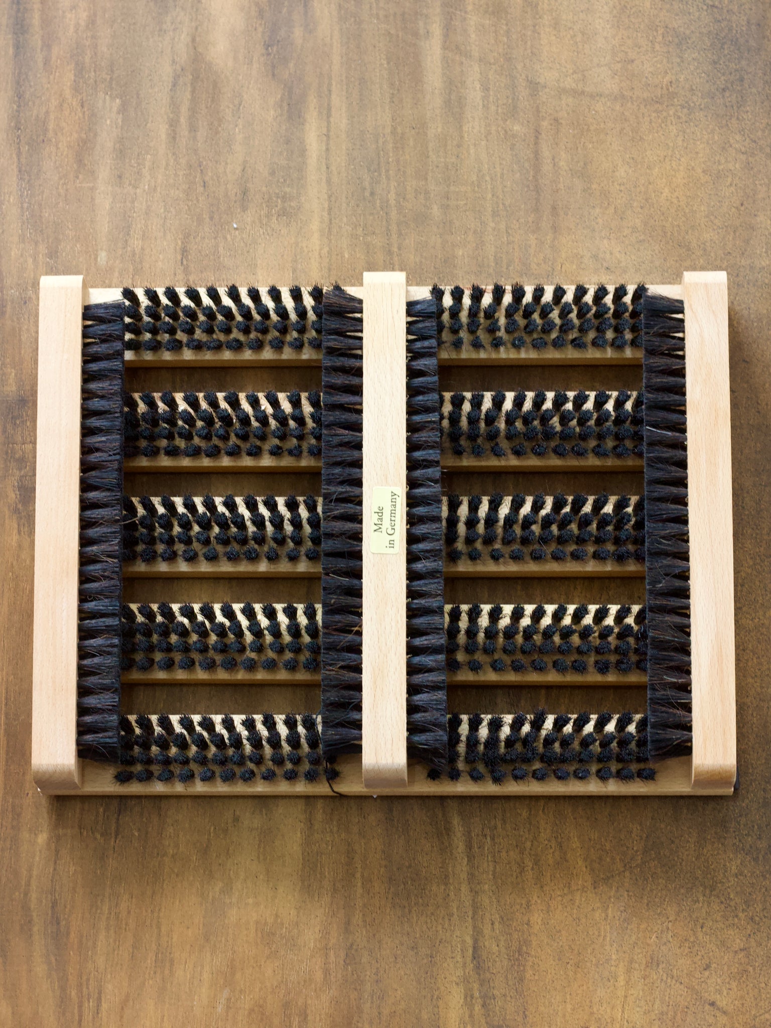 Handcrafted in Germany from oiled beech wood, Redecker's traditional craftsmanship shines through with this sturdy Door Mat with side scrapers. A true statement piece, this beautiful product has been designed to clean shoes from the bottom and sides.